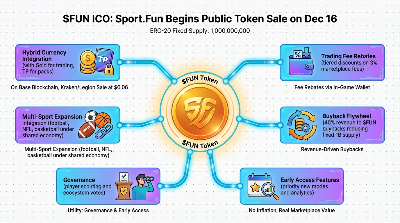 John (Analyst): In a market flooded with GameFi projects promising revolutionary economies, Sport.Fun emerges with its $FUN token ICO, launched on December 16, 2025, via platforms like Kraken and Legion. Drawing from on-chain data and official announcements, this isn’t just another hype-driven sale—it’s positioned as a utility token for a fantasy sports ecosystem built on the Base network (a Layer 2 solution on Ethereum for faster, cheaper transactions). The project’s design philosophy revolves around integrating real-time sports data with blockchain trading and rewards, aiming to create a sustainable loop between player engagement and token value. Why does this matter? Because most GameFi tokens crash due to poor emission controls, and Sport.Fun’s setup, including features like FUN Score for airdrop eligibility, attempts to tie rewards to actual participation. We’ll dissect if it’s built to last or just another short-term pump.